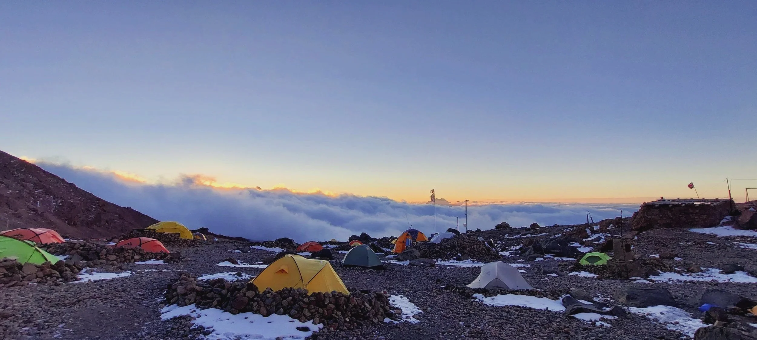 Nüüd hakkab kõrgus juba tunda andma. Hommikul võib tunda peavalu, see on normaalne. Võtame rahulikult. Puhkame, aklimatiseerume, harjume kõrgusega. Paneme jalga kassid, harjutame köies kõndimist ning tehnikaid, kuidas kirkaga libisemist peatada. Teeme väikese aklimatiseerumismatka.
