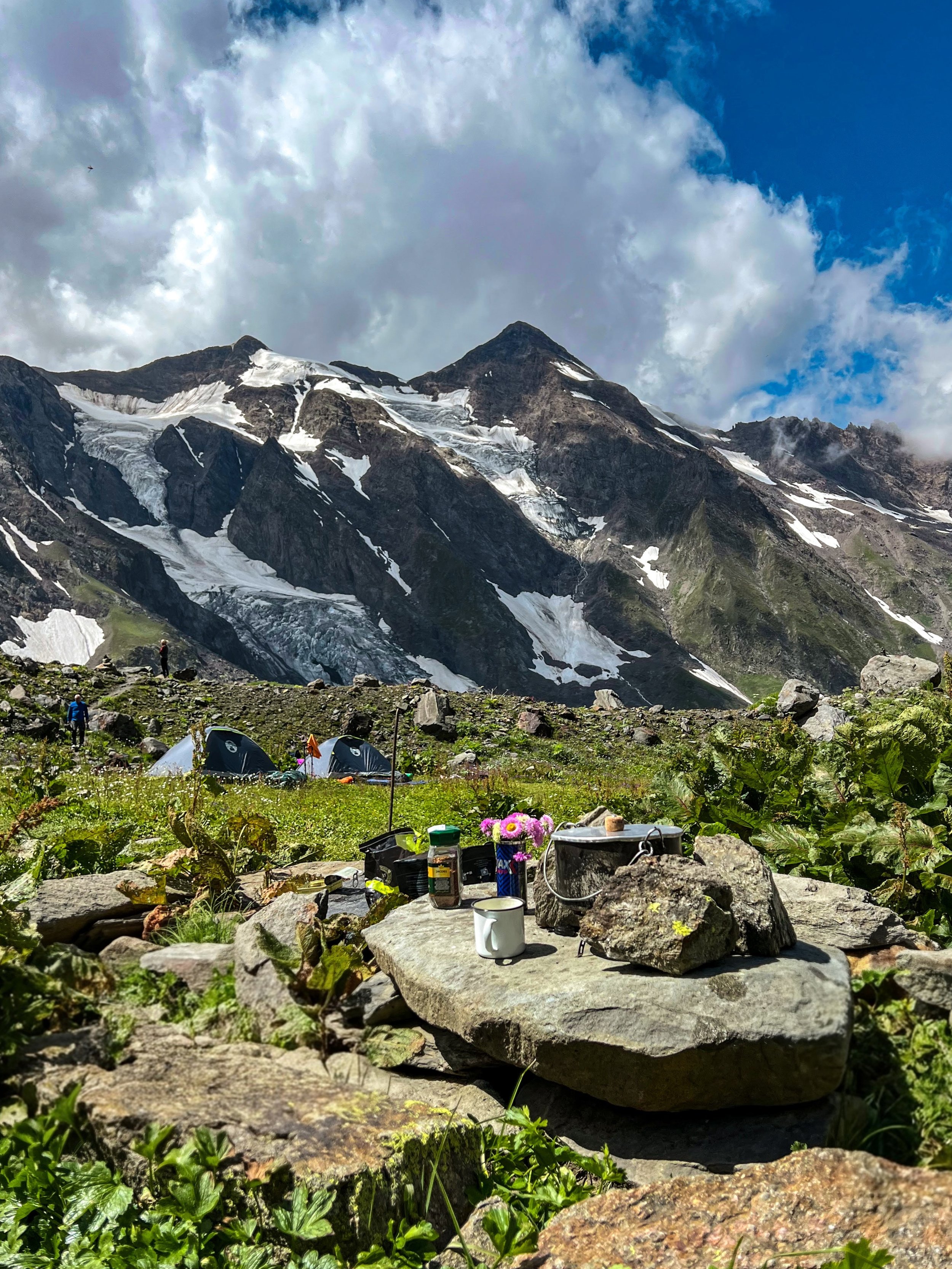Alustame teekonda Laila suunas. Sõidame Tviberi külla ja matkame raskete kottidega ülespoole baaslaagri suunas 2800 m kõrgusel. Sinna seame üles oma telgid.