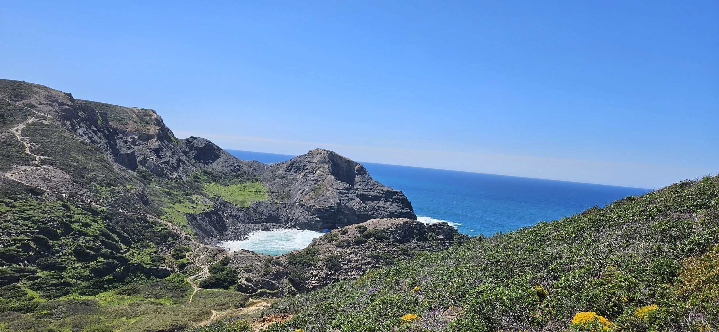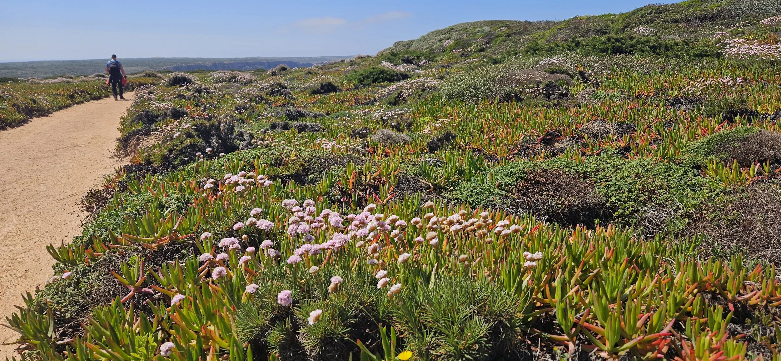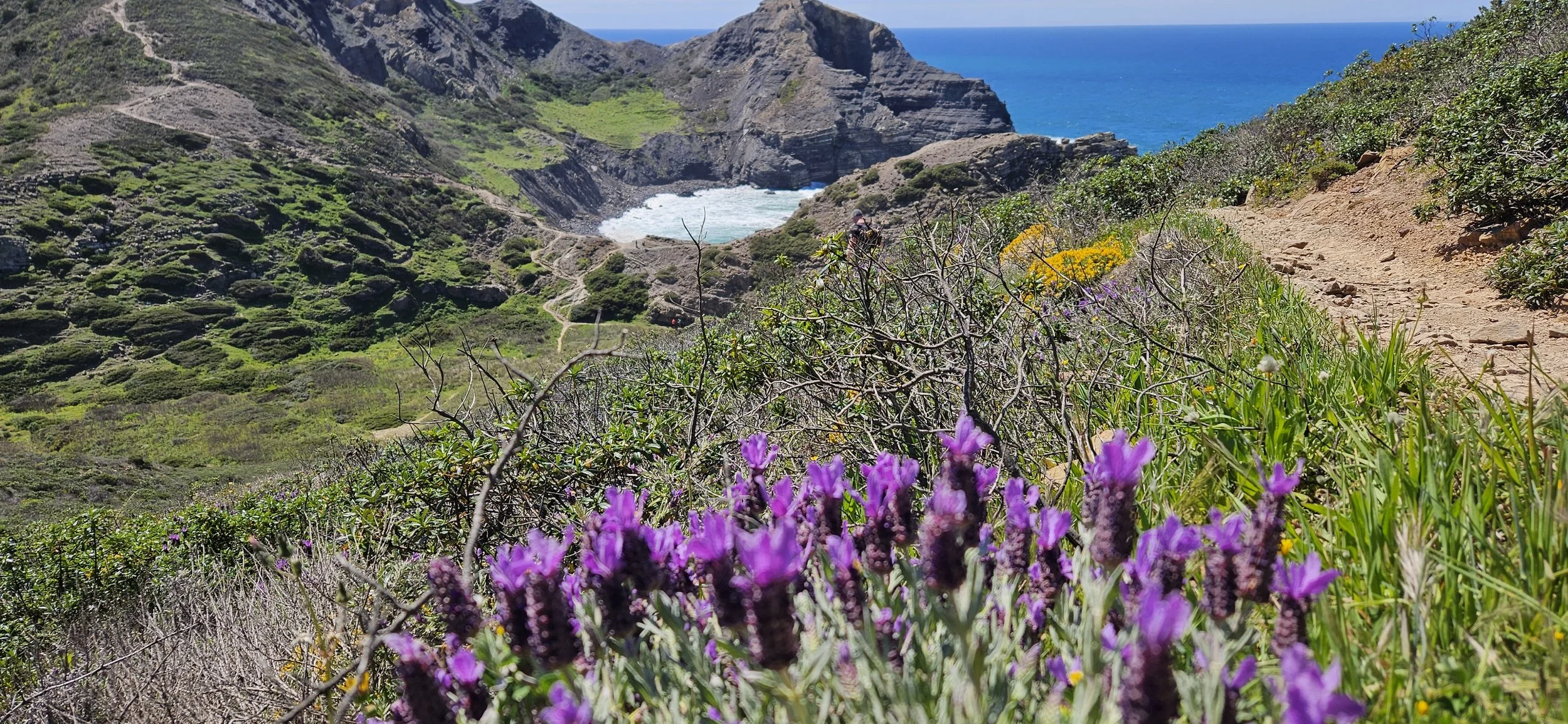 Loomulikult teeme rohkeid pildistamispause – loodus on rannikul ilus, vaated ookeanile lummavad ja kevadine lillemeri ei jäta ilmselt kedagi päris külmaks. Meie eesmärk on näha Portugali turismikohtadest välja jäävas osas – tutvume, kuidas elavad lihtsad inimesed külades, milline on rannikualade loodus ja imetleme muidugi lõputud ookeanivaated ilma Läänemerele omase adrulõhnata 😊. Kaluri matkarada on märtsis mõnusalt inimtühi, seega saame kõike seda nautida.
